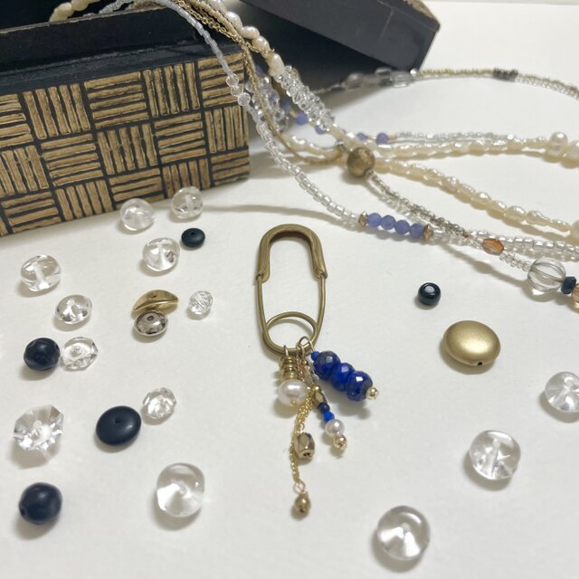 【宝箱から出てきたような真鍮のピン】美しいラピスラズリと淡水パール