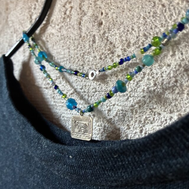 *happy price*古のネックレス@カレンシルバーチャーム+アジア渡りの古いビーズとベネチアなどの古いビーズいろいろ