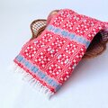 北欧手織り1点物:柔らかなコットンクロス(レッド×ブルー)
