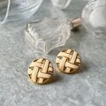 PN38-【 Napier 】ネイピア・ヴィンテージピアス 1980s Ivory Enamel Basket Weaving