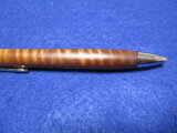 このペンは黄金色の肌目で艶があり、メラメラと輝く珍しいカーリー杢の美しい作品です。なお、軸の太さは最大13ミリと細目タイプです。