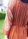このワンピースは、好きな色の花をプラスしたい!とワンピースの雰囲気に合わせた、シンプルに華やぐの花を控えめに輝くシルバーで描いています。