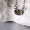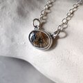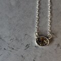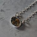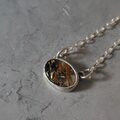 ヘマタイトを中心に放射状に伸びるルチルを内包したスタールチルクォーツをシルバーネックレスに仕立てました。