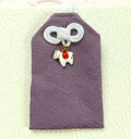 伝統的な縁起の良い紗綾形柄の正絹生地に2026年の干支「午」を飾ったお守り袋です。
