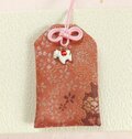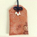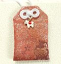伝統的な縁起の良い銀桜文様の金襴生地に、2026年の干支「午」を飾ったお守り袋です。