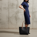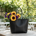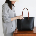 上質なシボ感のあるブラックレザーで仕立てた、本革トートバッグです。