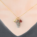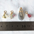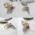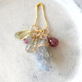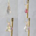 3種のパーツからなるフリンジチャーム。使用石は、ラウンドカットラブラドライト(1)&ピンクスピネル(1)、クリアトルマリン(2)&ラブラドライトタンブル(1)、ホワイトジルコン(2)&グレームーンストーン(1)。単品でも、他のトップと組み合わせてお使いいただいても素敵です。※()内は使用個数