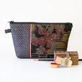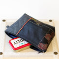 大島や他正絹紬・絣などを切り替えてオシャレに細いラインで締めました手作りポーチです。柄物の生地は表側で良い柄が出るようにしておりますので反対面は成り行きです。内袋は和柄の木綿地や胴裏・八掛などを使っています。細いラインは白大島を手染めでムラ染めにしたものをバイアステープに仕立てております。金茶ライン・赤ラインは正絹八掛をバイアスにしております。