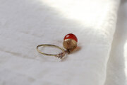 赤やオレンジ色のカルセドニーの一種。和名では「紅玉髄(べにぎょくずい)」と呼ばれ、「勇気」「情熱」「創造性」といった石言葉を持つ。