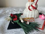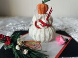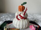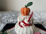 1㎜の籐で鏡餅を編みました。1mmの籐でミカンを編んで乗せました。