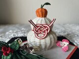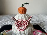 1㎜の籐で鏡餅を編みました。1mmの籐でミカンを編んで乗せました。
