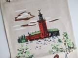 ストックホルム市庁舎や湖のある景色、農村で暮らす人々など、場面ごとに異なる風景が連なり、壁に掛けるだけで空間が明るく優しい雰囲気に。