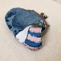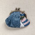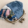がま口ポーチ お花のつまみ 金華山織ブルー