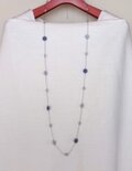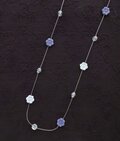 淡い色合いの装いにはもちろん、黒や茶系の装いにも相性の良い、ウエストラインを超えるようなロングネックレスです。