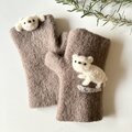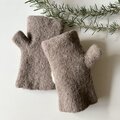 手編みの手袋をフェルト化させて密度を高めた温かい指なしミトンです。