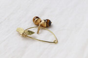 ブローチ台と葉っぱは真鍮で作り、タイガーアイを合わせて仕立てました。