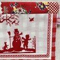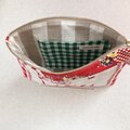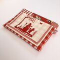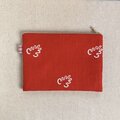 反対面の赤い生地はヴィンテージ布で刷毛目のようなムラがあります。