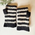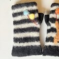 手編みの手袋をフェルト化させて密度を高めた温かい指なしミトンです。
