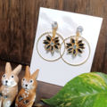 ブラックフラワー✿フープリング ポストピアス 単品 ハンドメイド No.1456