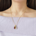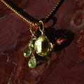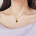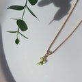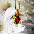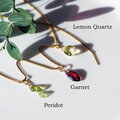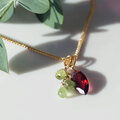 しなだれるペリドットとガーネットとともにデザインされた愛らしいペンダントトップは季節感をぐっと引きたててくれる清涼感のある組み合わせです。