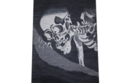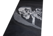 圧倒的な存在感。浮世絵の世界を背中に纏う。 幕末の奇才、歌川国芳の傑作「相馬の古内裏」に登場する巨大な髑髏(がしゃどくろ)を、西陣織の繊細かつ大胆な技術で再現しました。