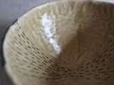 黒い泥で絵を描き、温かみのある黄色い釉薬をかけました。
