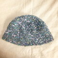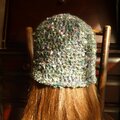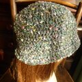 リボンテープがついたような変わり糸でかぎ針で編みました。