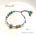 [※1点限り]macrame ⌘ kantha カンタビーズと小さな天然石のマクラメブレスレット[マザーオブパール]LS-1
