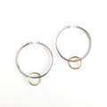 シルバーカラーのフープに対し、ゴールドカラーのメタルリングパーツが揺れるバイカラーデザイン。