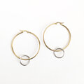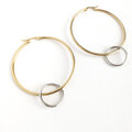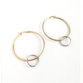 ゴールドカラーのフープに対し、シルバーカラーのメタルリングパーツが揺れるバイカラーデザイン。