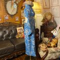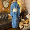着物リメイク ロングワンピース ドレス 洗える 化繊 帯サッシュベルト 和洋折衷 レトロ 古着 KW-1067