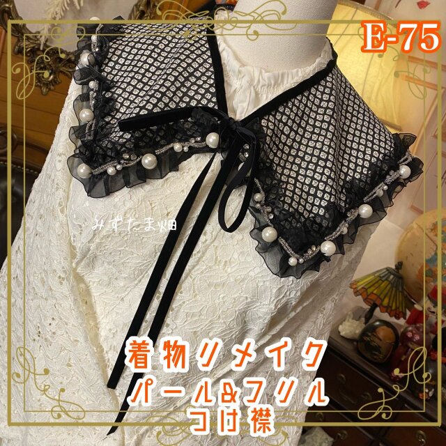 【着物 リメイク つけ襟 付け衿 セーラー襟 |パール&シフォン|和洋折衷・レトロモダンデザイン|京の小粋な遊び心 E-75】