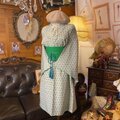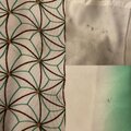 このワンピースは、淡いグリーンみのあるクリーム色や薄緑色の着物地に、永遠に続くかのような「麻の葉紋」が描かれた、知性あふれる着物リメイクドレスです。幾何学的な古典美と、現代的なシャープなシルエットが見事に調和した、静謐な美しさを放つ一着です。