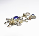 ブルーの装飾が施されたパーツ、チェーン、大小の鈴、くにゃっと曲がった平たいパーツ、少しぷっくりとした、ひし形や太陽のようなパーツは、アフガニスタンから届いたものです。