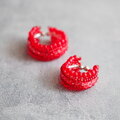 ビーズとスパンコールのイヤーカフ(レッド)・小【受注】