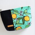 ・表の緑地にオレンジのデザインは、MacaRongRongさんデザインの生地を業者にプリントオーダーした、一点もの。10号キャンバス地。