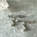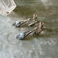 シルバートーンに透明感のあるサファイアブルーのカットグラス、クリアなラインストーンが上品に煌めきます。