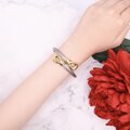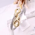 ブランドを象徴するケーブルワイヤーデザインが美しく編まれ、流れるような曲線を描くゴールドトーンのメタルパーツが優美な印象を与えます。