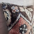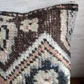 あたたかな風合いトルコキリムのクッションカバー/40 × 40cm/花×幾何学×茶/ヴィンテージキルト
