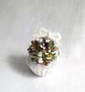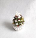 カットガラスやパールたちが、光によってキラキラ輝く松ぼっくりのツリー。