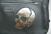 ブランドのスカル(クリスタルのピアス付き)がくり抜かれて、裏からシルバーの皮を見せている特徴のあるデザインです。