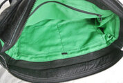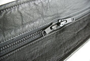 口部のファスナーは両開きで、金属ファスナーですが黒の艶消しに塗ってある、とても渋いファスナーで凝った感じです。