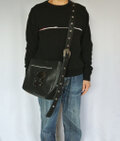 肩掛けベルトは4㎝幅で凝ったデザインのバックルが使ってあり、片側のみで長さ調整ができます。