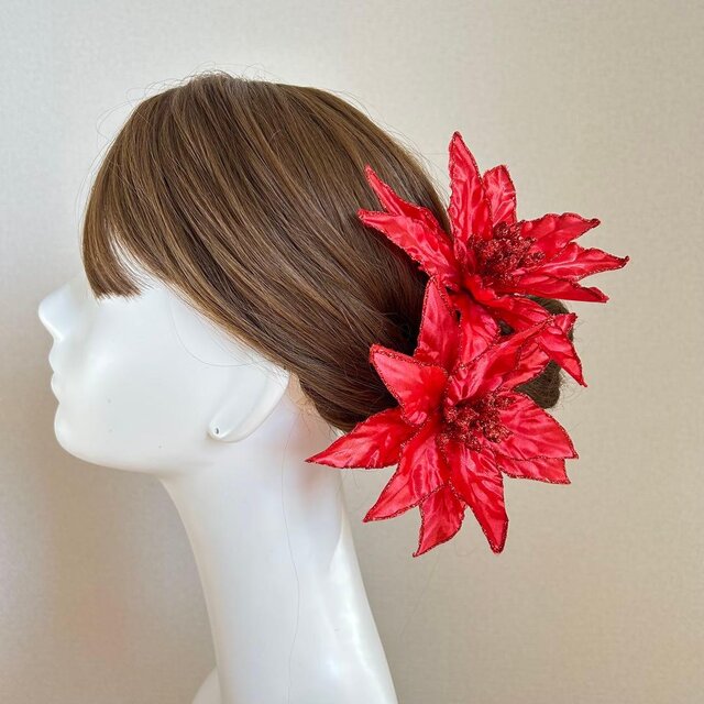 赤いポインセチアのヘッドピース(2点セット) クリスマス 赤いポインセチア 発表会 フラダンス フラメンコ ダンス 赤