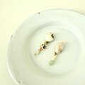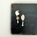 鉱石のようなカタチのオリジナルプラスチックに、ヨーロッパのアンティークビーズや花とジルコニアパーツを組み合わせました。