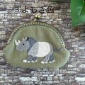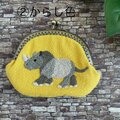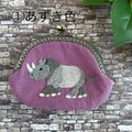 口金は、千鳥掛けで縫いつけてあり、グレーの刺し子糸がサイの色と調和しつつもアクセントになっています。