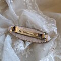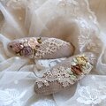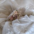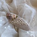 エクリュリネンにアンティークレースをのせて、リボンとビーズで刺繍した優しい雰囲気のバレッタです。