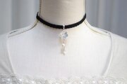 【受注製作】レジンアート 凹凸モチーフとタティングレースとベルベットリボンのチョーカー〈舞花〉(シルバー)