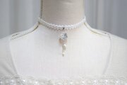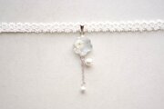 【受注製作】レジンアート 凹凸モチーフとタティングレースとサテンリボンのチョーカー〈舞花〉(シルバー)