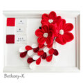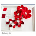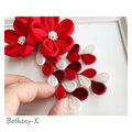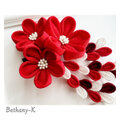七五三・卒業式に◆大きくて可愛いつまみ細工の髪飾り(下がり付き)◆赤×白×えんじ色の自分でもママでも簡単につけられるつまみ細工